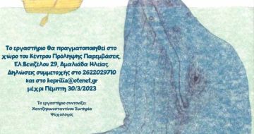 Το εργαστήριο θα πραγματοποιηθεί τη Δευτέρα 3 Απριλίου 2023 και ώρα 18:00-20:00 στο χώρο του Κέντρου Πρόληψης Παρεμβάσεις, Ελ.Βενιζέλου 29, Αμαλιάδα Ηλείας. Την μέρα εκείνη θα δοθεί η δυνατότητα σε όσες/ους συμμετέχουν να γνωρίσουν την Ανοιχτή Υπαίθ…