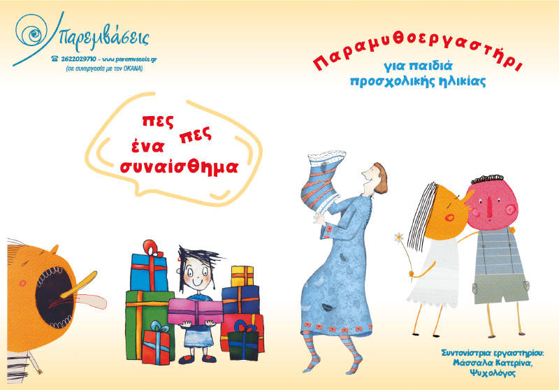 Παραμυθοεργαστήρι για μαθητές/τριες νηπιαγωγείων: «πες πες ένα συναίσθημα», «του θυμού τα καμώματα» ,«έχω έναν θησαυρό που τον λένε εαυτό»