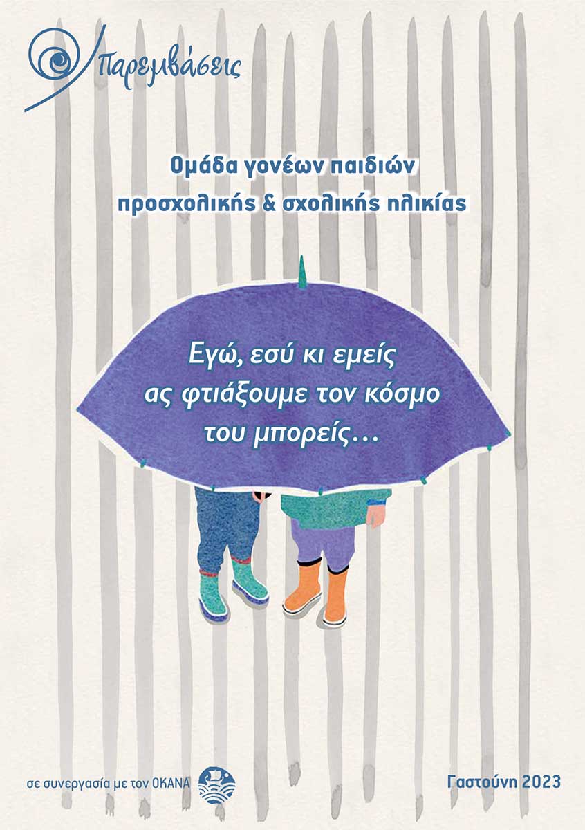 Το Κέντρο Πρόληψης «Παρεμβάσεις» συνεχίζοντας την υλοποίηση προγραμμάτων για την οικογένεια, σχεδιάζει να πραγματοποιήσει στην Γαστούνη ομάδα για τους γονείς των παιδιών προσχολικής και σχολικής ηλικίας.