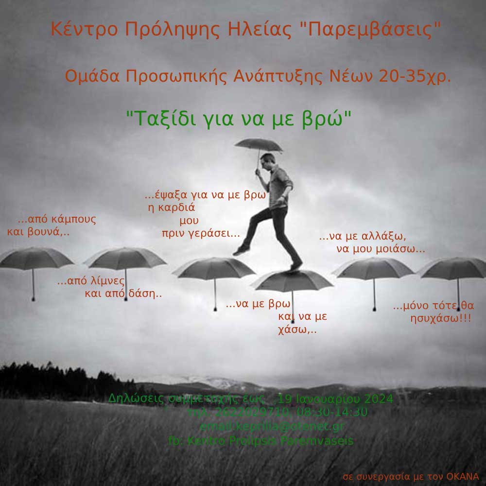 Μια ομάδα νέων 20-35ετων θα ξεκινήσει μέσα στο 2024 αξιοποιώντας την τέχνη- τραγούδι, ζωγραφιά, κόμικ, φωτογραφία, ταινίες, λογοτεχνία- με στόχο την ανάδυση της πηγαίας δημιουργικότητας και αυθορμητισμού που ενισχύουν την πολύπλευρη ανάπτυξη του εαυτού μαζί με άλλους.