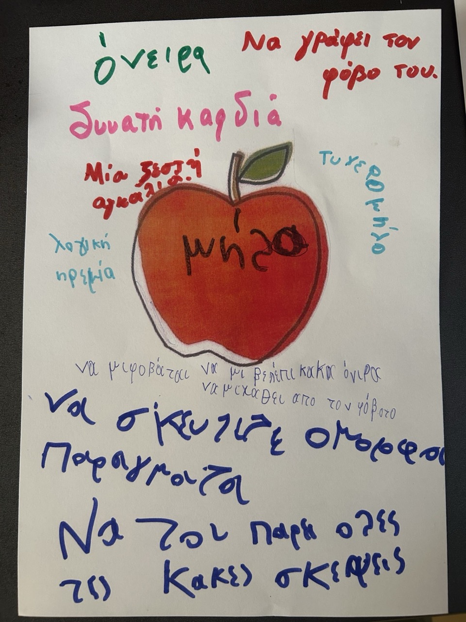 Στο πλαίσιο του προγράμματος και μετά την ολοκλήρωση του, υλοποιήθηκε και μια κοινή συνάντηση γονέων - παιδιών. Η συνάντηση αυτή αφορούσε μόνο τους γονείς που συμμετείχαν προηγουμένως στην ομάδα. Το θέμα που εστιάσαμε, ύστερα από αίτημα των ίδιων των γονιών ήταν η έκφραση και διαχείριση του φόβου. Με την πολύτιμη βοήθεια των παιδιών ανακαλύψαμε ότι μια ζεστή αγκαλιά από αγαπημένα πρόσωπα, οι όμορφες σκέψεις, η λογική και η ηρεμία, τα όνειρα, η συζήτηση και η αποδοχή μπορούν να κάνουν την καρδιά μας πιο δυνατή και να μας βοηθήσουν «να μην χαθούμε από τους φόβους μας».