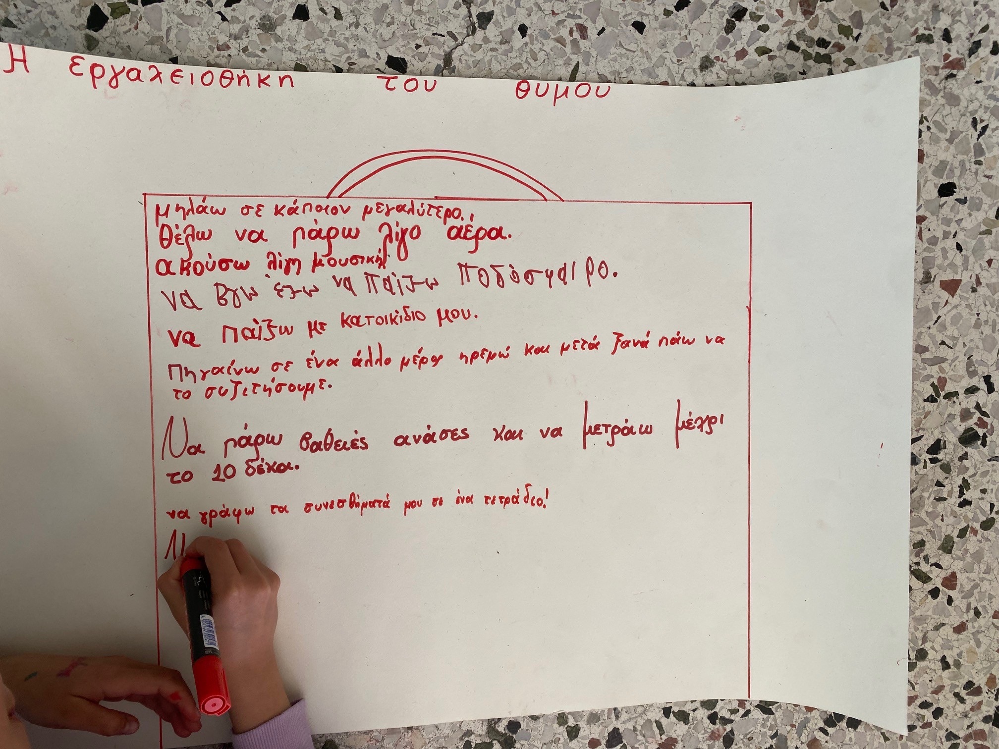 Η δράση είχε ως στόχο να δημιουργήσει έναν ασφαλή χώρο έκφρασης και αλληλεπίδρασης, όπου οι μαθητές μπορούσαν να μοιραστούν σκέψεις και εμπειρίες από την καθημερινότητά τους στο σχολείο. Οι θεματικές που επεξεργάστηκε η ομάδα αφορούσαν τη γνωριμία και το «χτίσιμο» της ομάδας, τη φιλία και τα χαρακτηριστικά των θετικών σχέσεων, τη διερεύνηση του εαυτού, καθώς και την αναγνώριση και έκφραση των συναισθημάτων. Ιδιαίτερη έμφαση δόθηκε επίσης στο συναίσθημα του θυμού και στους τρόπους με τους οποίους μπορεί να αναγνωρίζεται και να διαχειρίζεται με λειτουργικό τρόπο.
