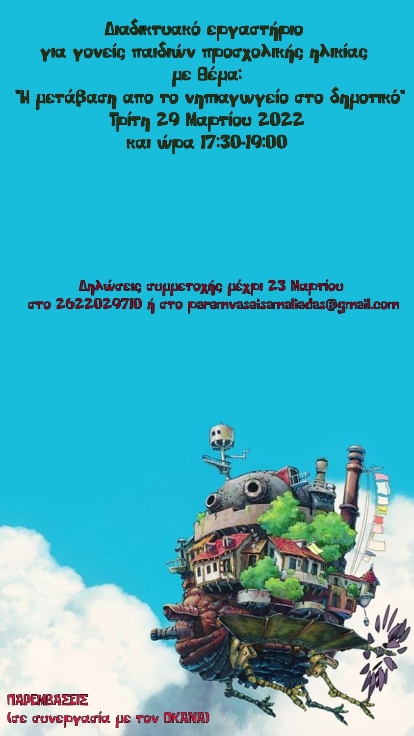 Διαδικτυακό εργαστήριο με θέμα τη μετάβαση για γονείς παιδιών προσχολικής ηλικίας